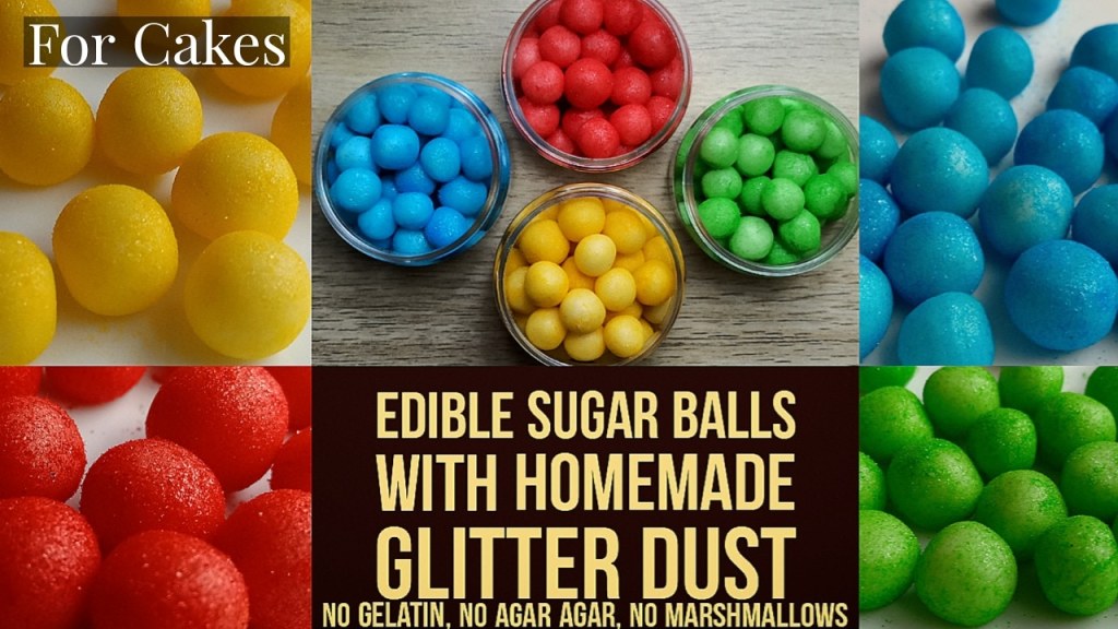 Today I have shared homemade Sugar Beads/Sugar Balls with Edible glitter dust and also share fondant & icing sugar making process in this video. Sugar Pear/Beads are used for cakes, cupcakes and bake decorations